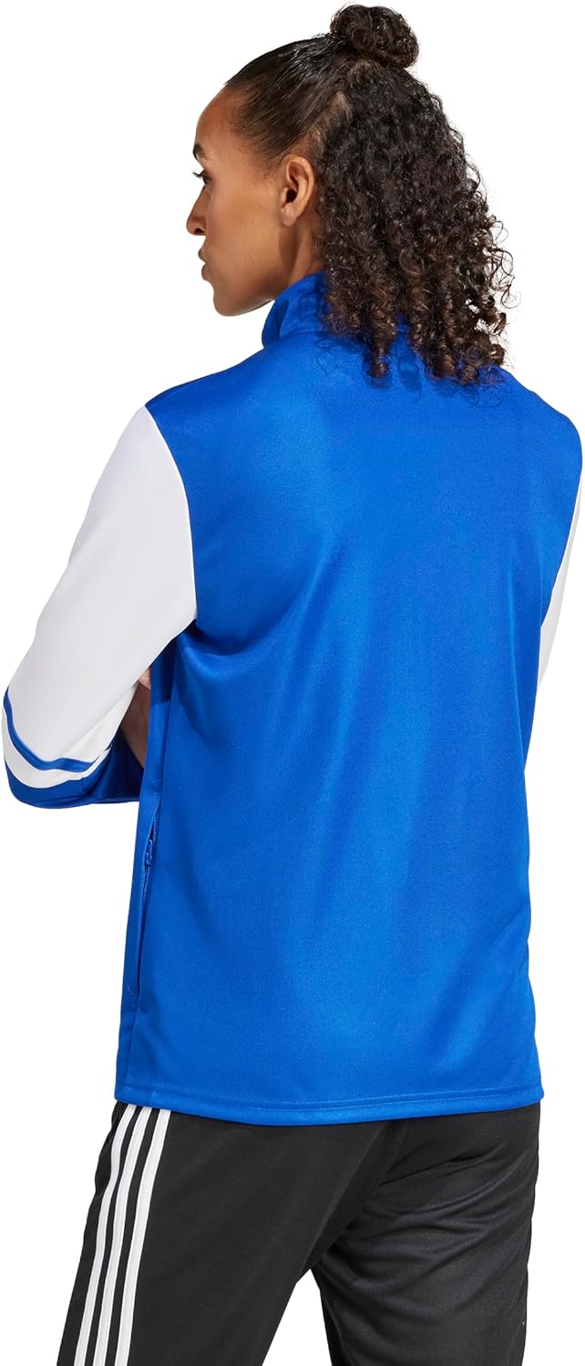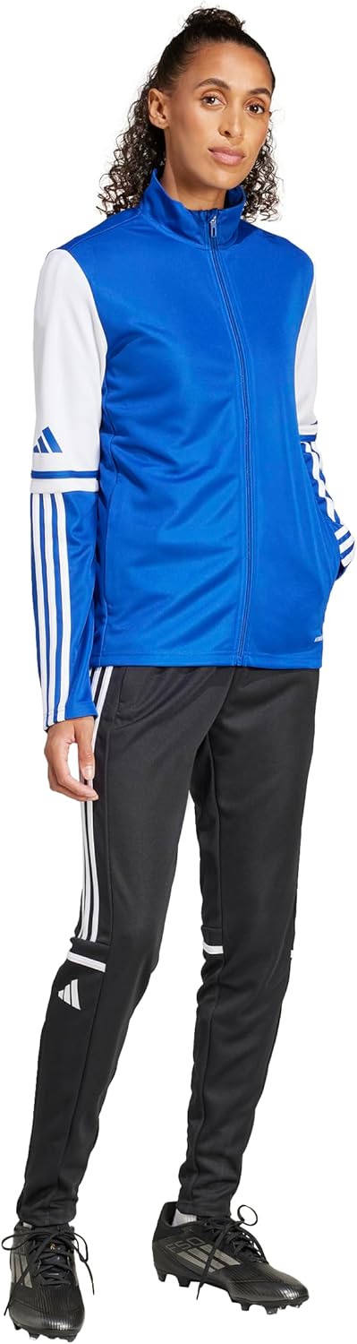 Created for the amateur game, this versatile adidas Squadra 25 Training jacket for women is designed with soft fabric and moisture-managing AEROREADY to keep you comfortable on and off the soccer field. The 3-Stripes and 3 Bar logo combine with blocks of color and a stand-up collar for a classic athletic look. Front zip pockets mean you don’t have to leave your valuables back in the changing rooms.