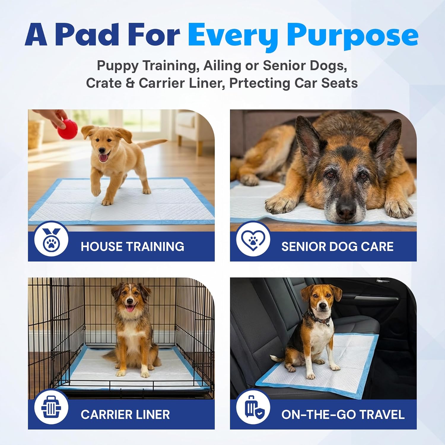 LEAK PROOF: Crafted with a soft and breathable top layer that’s gentle on your pet’s paws, liquid-locking technology, and waterproof backing to prevent seepage, these dog pads provide ultimate protection and ensuring your pet always has a comfortable place to go, making these the ideal training pads for dogs.