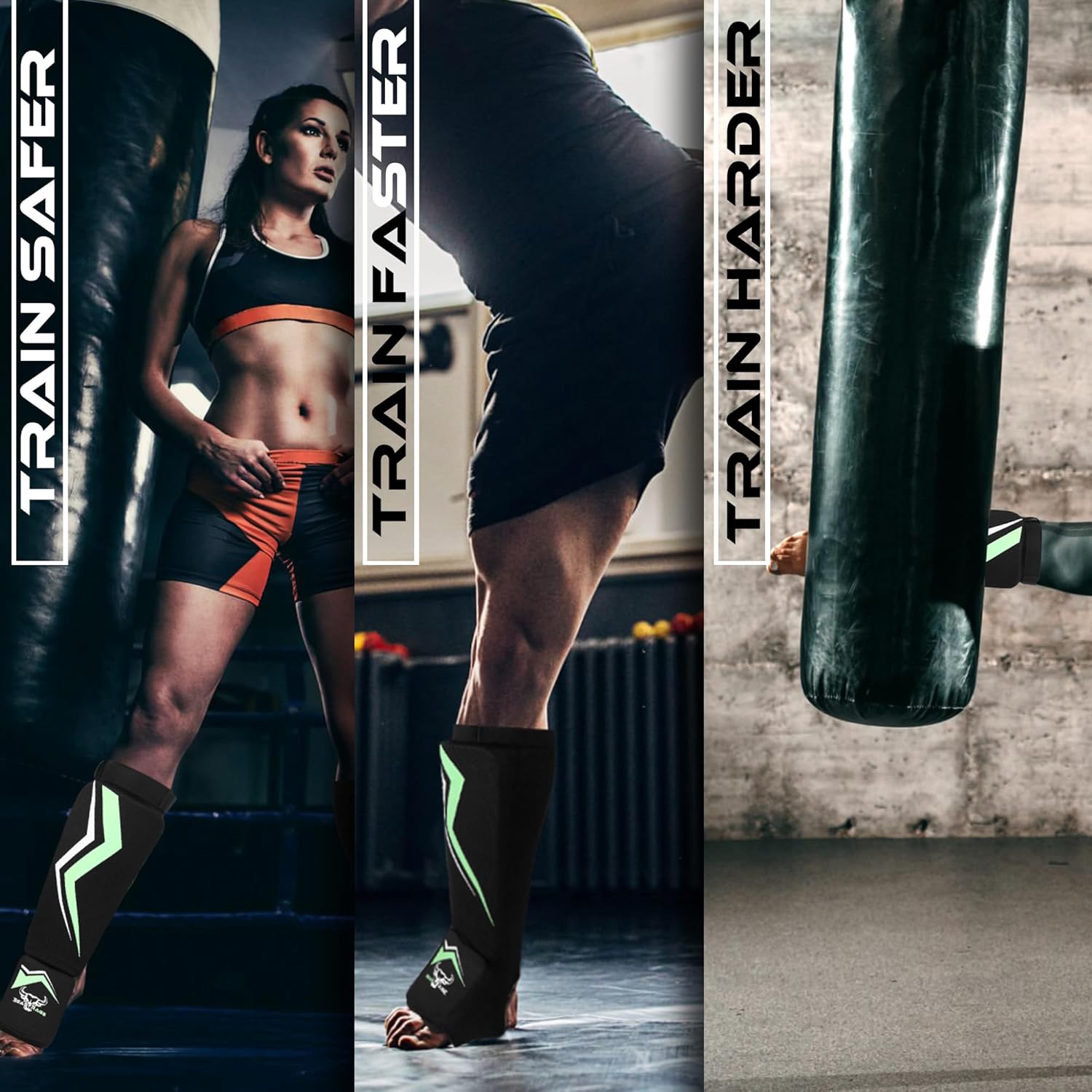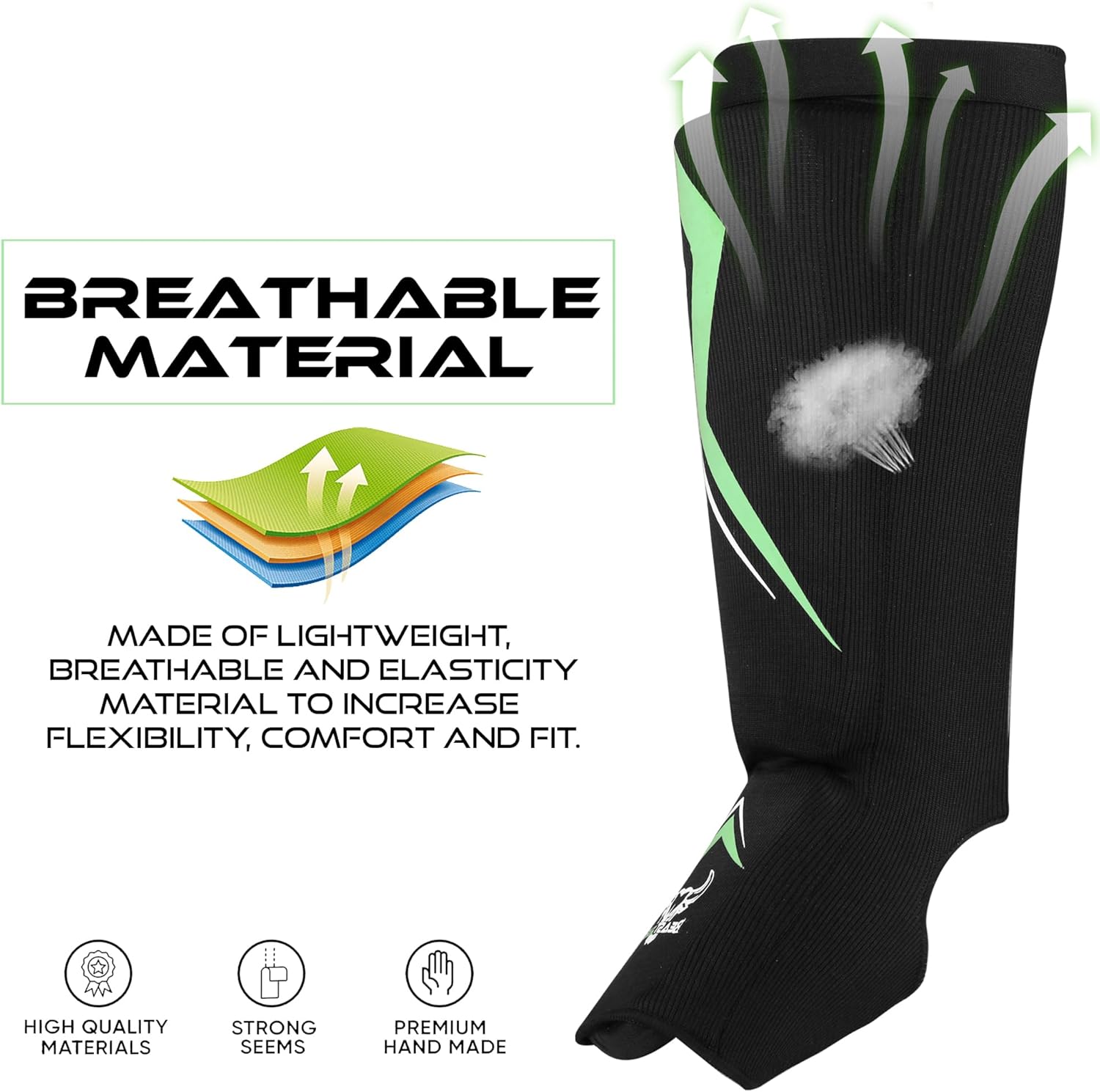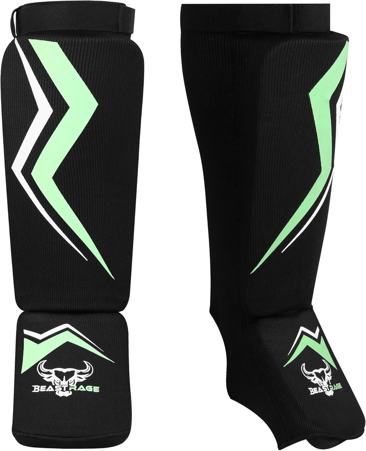 BEAST RAGE Shin Guards for Kickboxing, Instep Sleeves Pads for Muay Thai MMA Training, Martial Arts Boxing, Elasticated Padded Leg Foot Protector for Karate BJJ Taekwondo Gear