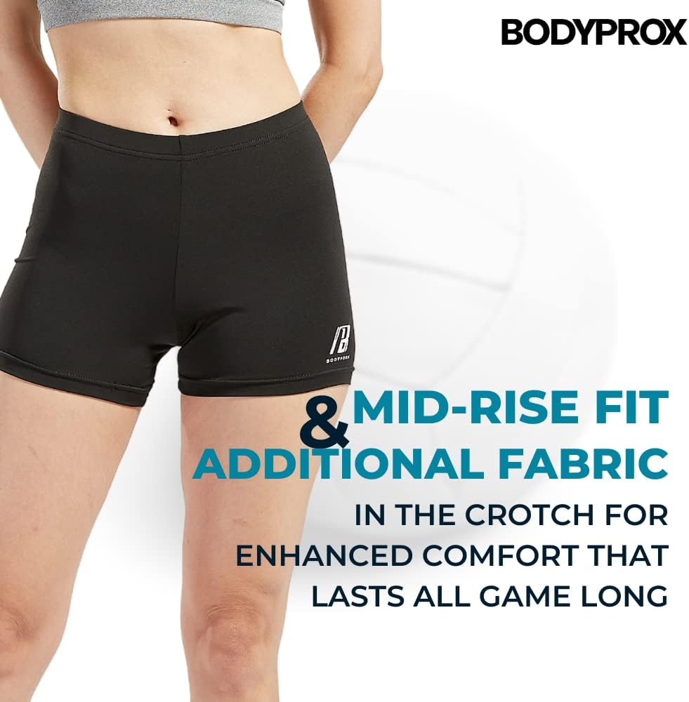 Bodyprox Volleyball Shorts provide great coverage! You won’t need to worry about unwanted bunching or riding as they feature a shorter design that does not sacrifice your comfort or confidence. Mid-rise for extra coverage when squatting down.