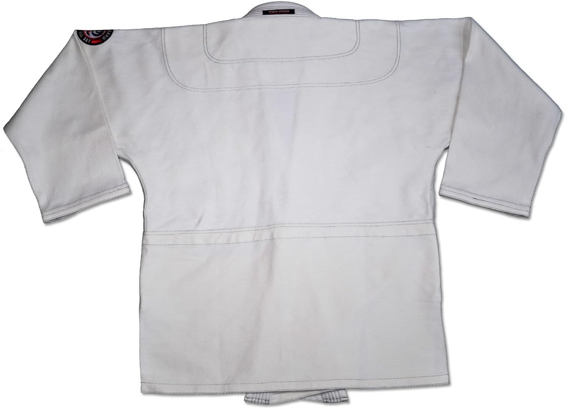 No Patch (it does have small logos as shown in the photo but it does not have any big patches on front lapel, back jacket) Brazilian Jiu Jitsu Gi/ Kimono. Customize your Gi with your own choice of logo or to resell in your gym Proshop to your students with your Gym/Academy logo.