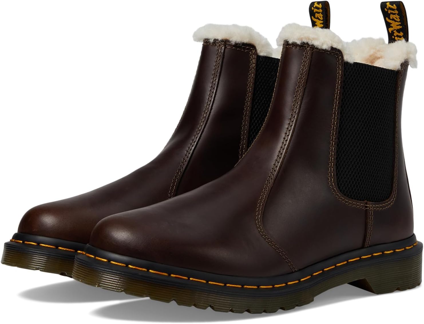 Step into timeless style and unparalleled comfort with the Dr. Martens Women’s 2976 Leonore Faux Fur Lined Chelsea Boots. Crafted from premium Orleans leather, these boots provide a supple yet durable upper that gracefully ages with time, ensuring your footwear remains as striking as the day you bought them. Designed with an insulated faux fur lining, these cozy warm boots are your perfect companion for chilly days, offering unmatched warmth and comfort. The slip-on boots for women feature side gore panels and a back pull tab, making them effortless to wear, while the Goodyear welt construction ensures resilience and flexibility, meaning these boots are built to last. Whether you’re navigating a winter wonderland or simply heading out in style, the ethylene vinyl acetate insole cushions every step, making these women’s soft boots ideal for all-day wear. The robust polyvinyl chloride outsole offers superior grip, making these boots perfect for outdoor adventures. Ideal for anyone seeking a blend of fashion and function, these black boots for women are not only warm but also versatile, seamlessly integrating into any wardrobe. Elevate your winter wardrobe with the Dr. Martens 2976 Leonore Chelsea Boots, where high fashion meets cozy functionality, making them the ultimate women’s fur winter boots.