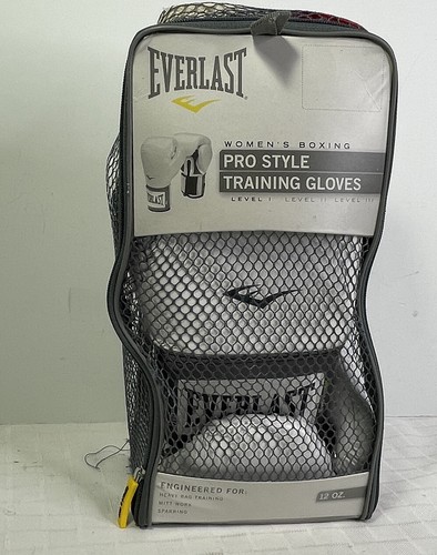 Everlast White Pro Style Training Gloves Boxing Sports Gym Sparring 12oz 2 Wraps