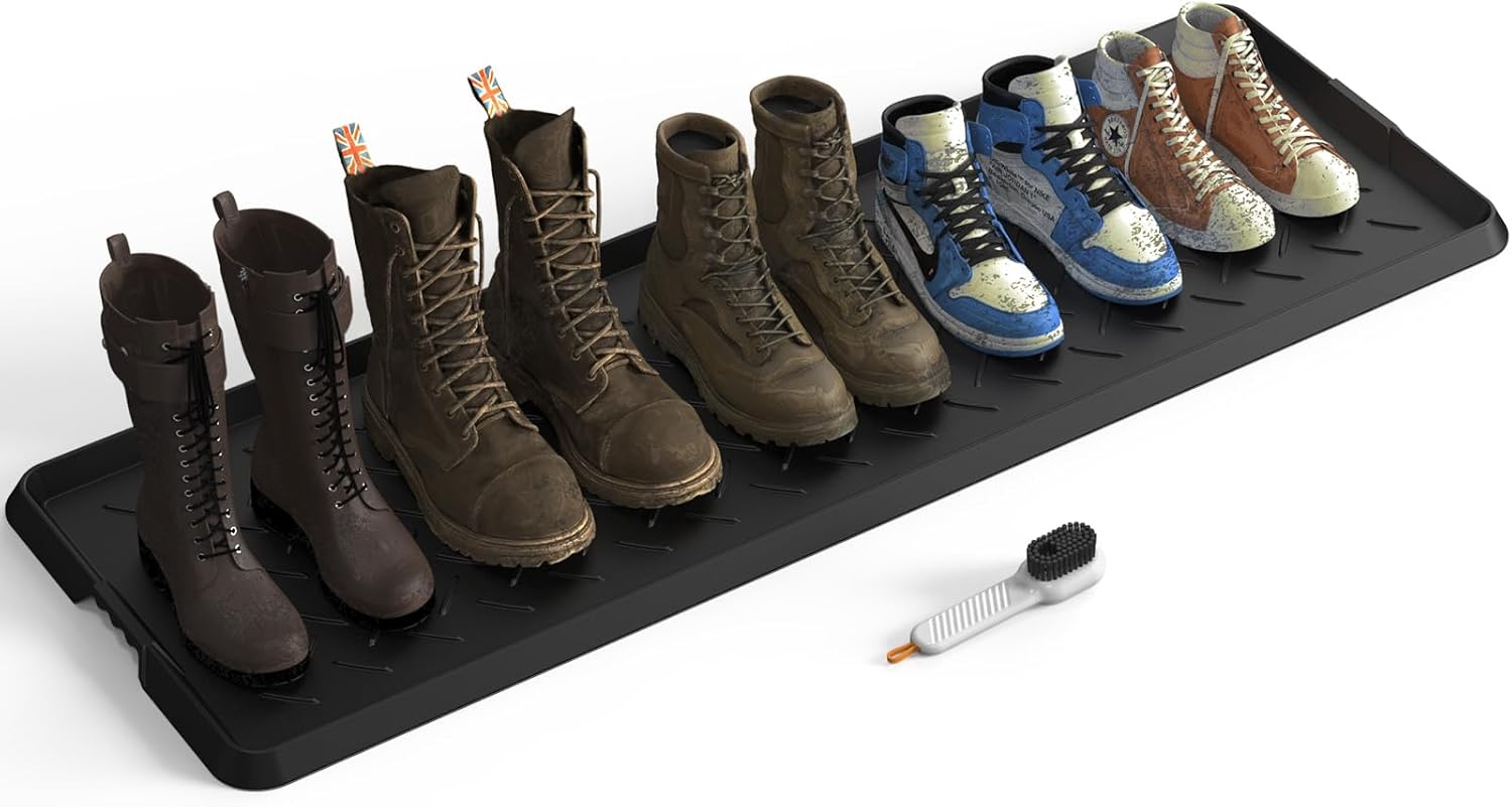 【Easy To Clean】Don’t worry about how to clean a mud boot mat,Natural rubber is 100% waterproof and stain resistant,Just rinse with water to make it look brand-new.the shoe brush helps you remove stubborn dirt from your boot tray or shoes
