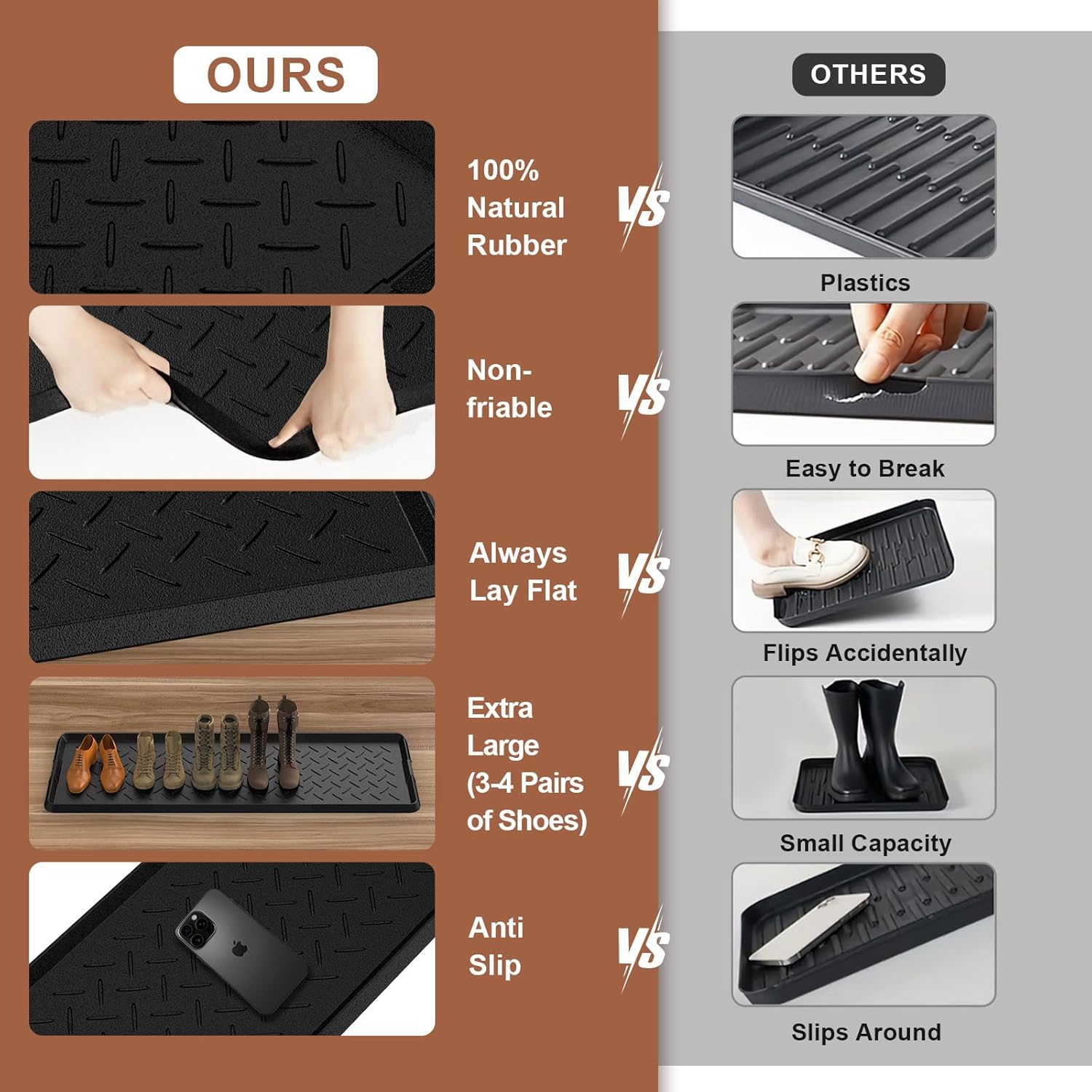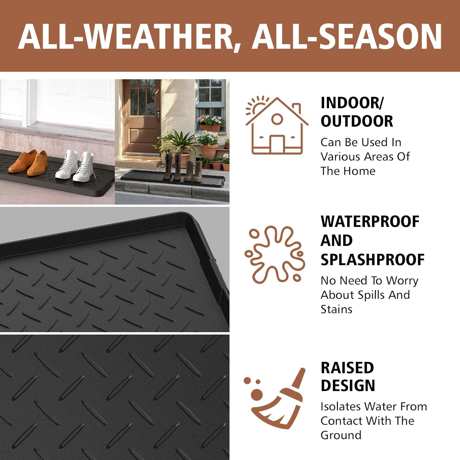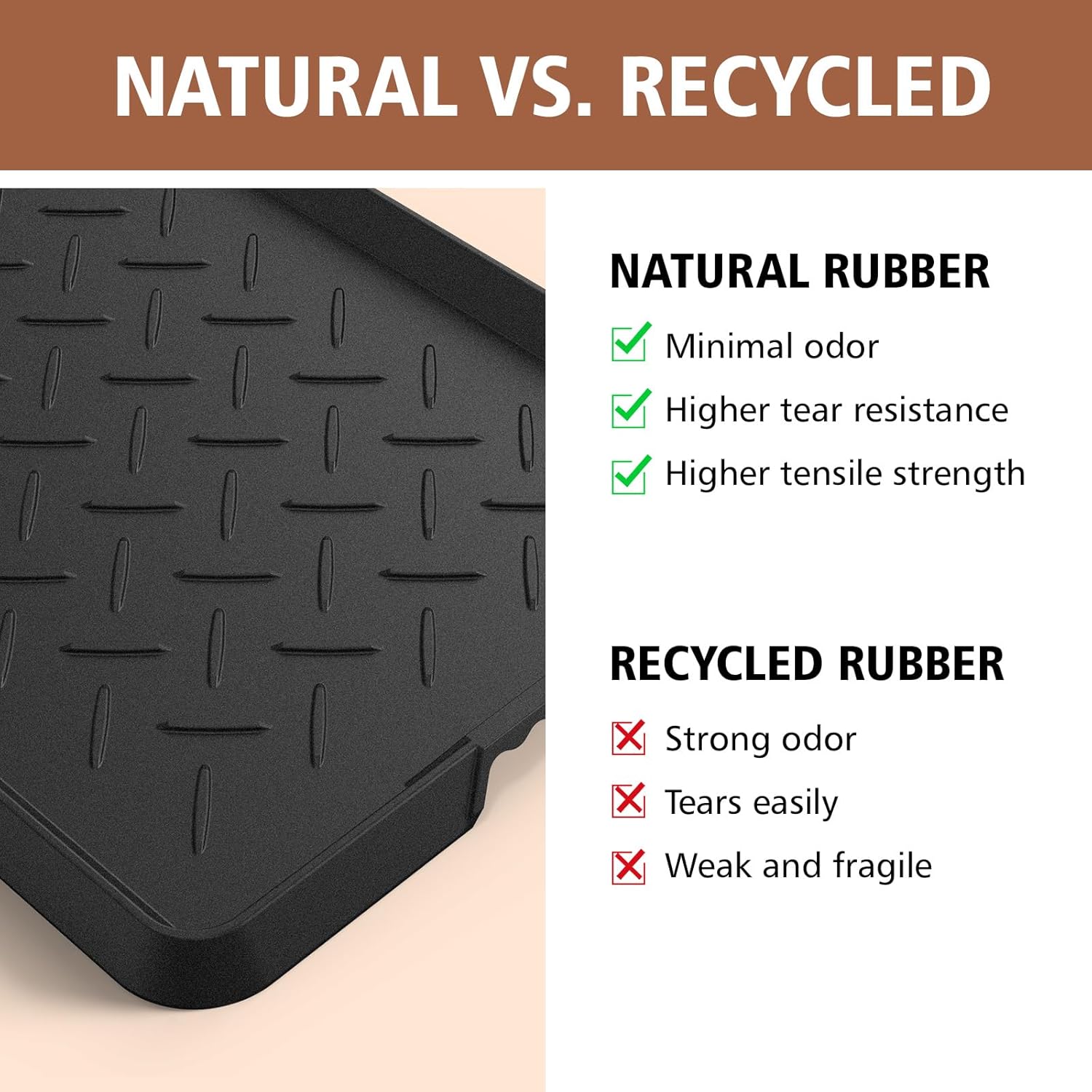 【Heavy Duty Rubber Boot Tray】Made of 100% natural rubber, it has higher tensile strength, higher tear resistance and less odor than recycled rubber, does not contain BPA and other materials, and is more friendly to people and pets