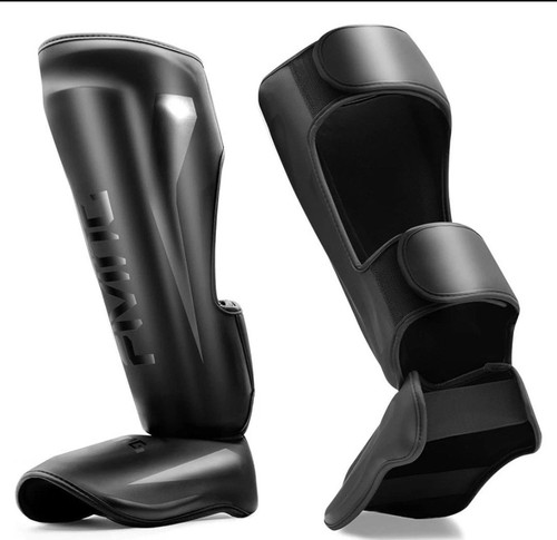 FIVING MMA Martial Arts Shin Guards Padded, Adjustable Muay Thai Leg Guards Sz-L