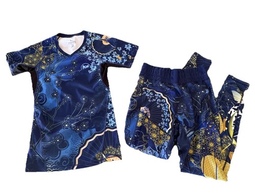 Gaidama Women’s Rashguard & Leggings Set Sz XS & S KOI BJJ Blue Multi-Color