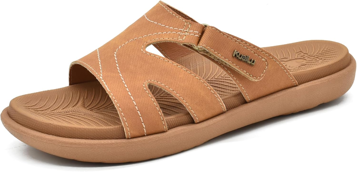 KUAILU Women Orthotic Arch Support Slides Sandals Open Toe Plantar Fasciitis Slip On Sliders Sandals