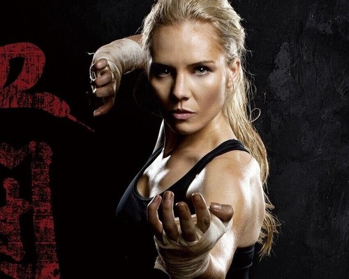 Lady Bloodfight Amy Johnston In Martial Arts Stance Black Sports Bra 8×10 photo