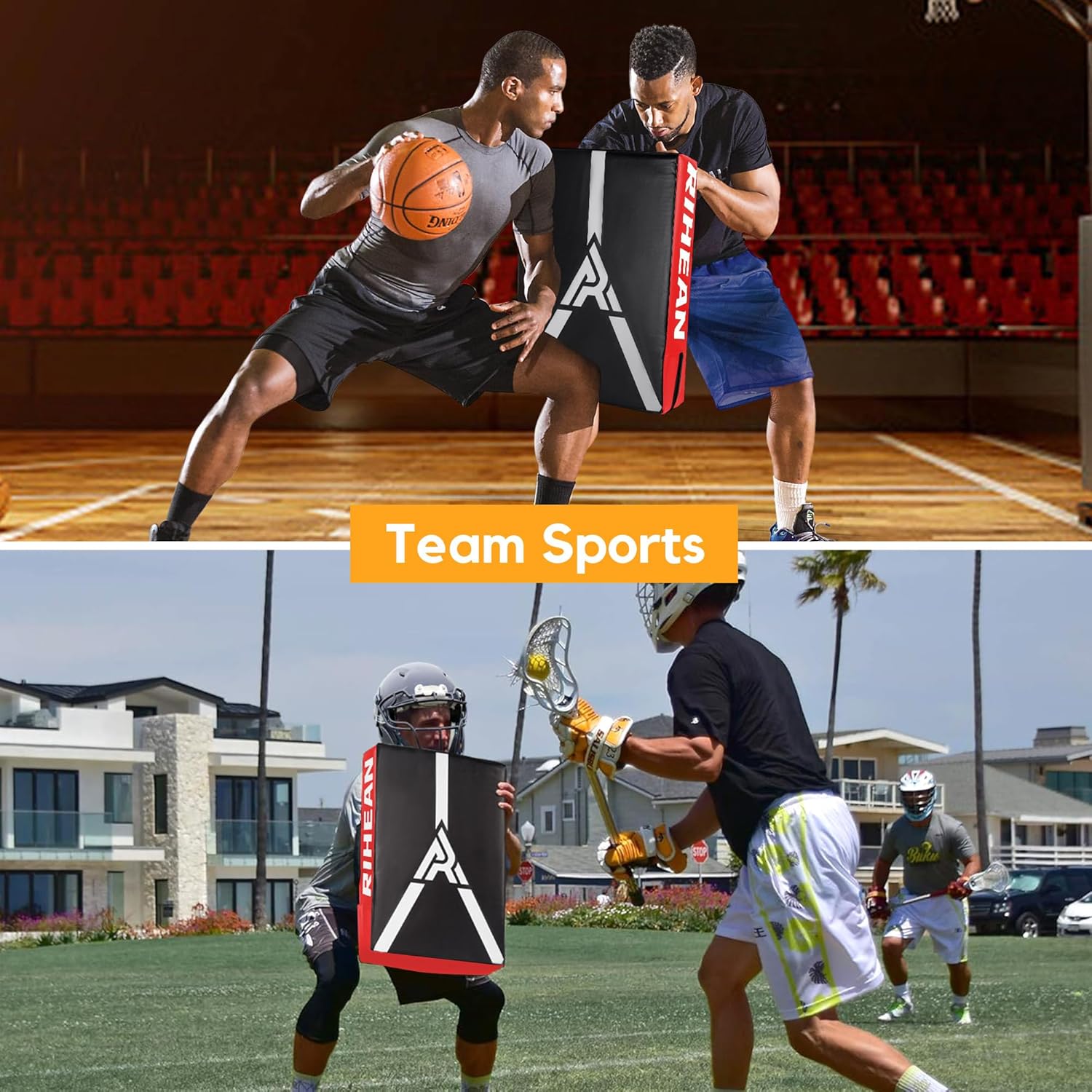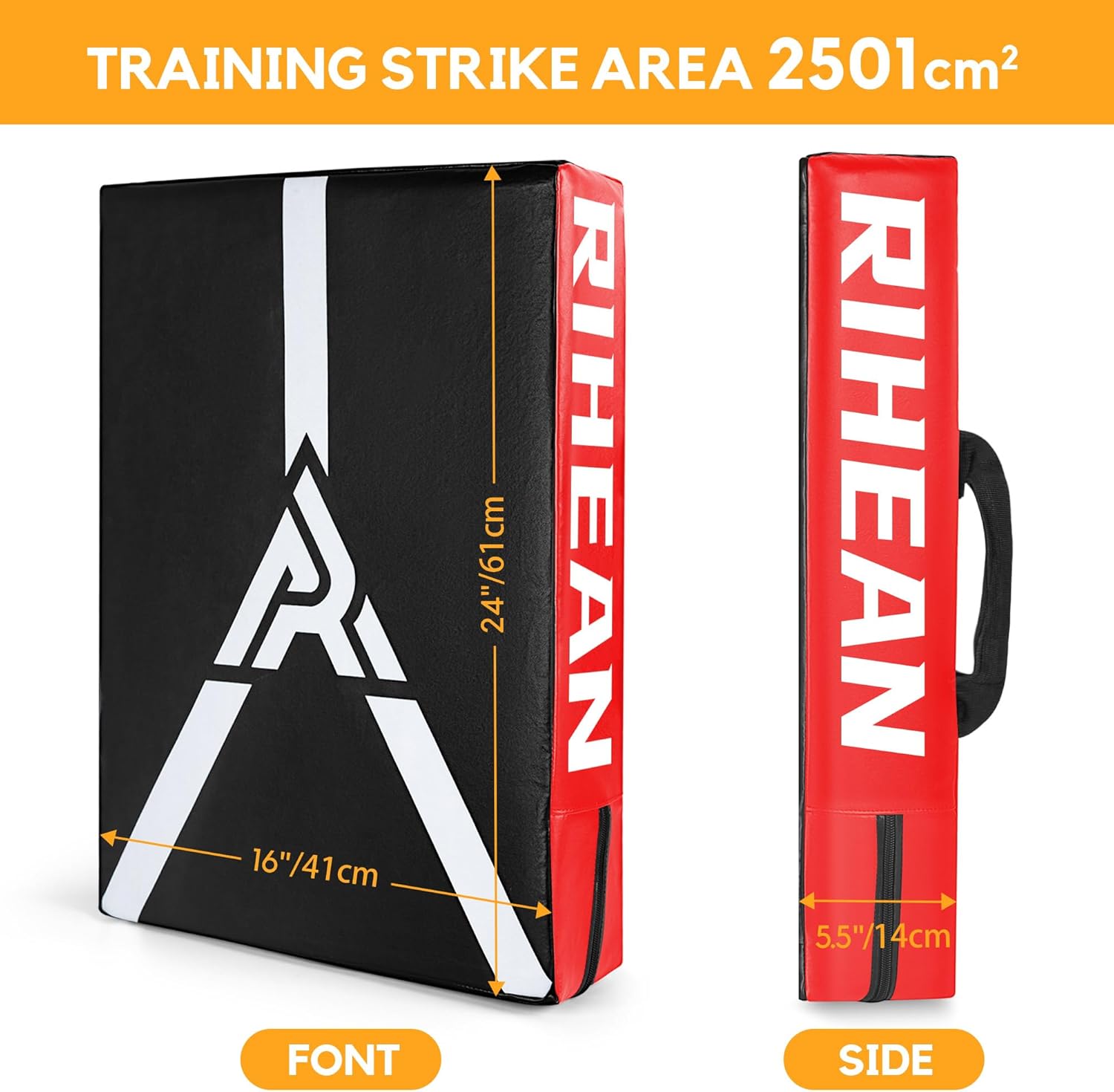 The RIHEAN blocking pad boasts an industry-leading design, incorporating five strategically placed handles for effortless grip and positioning in various training scenarios. This adaptable feature caters to diverse user preferences, optimizing efficiency and versatility for kickboxing, martial arts, and even sports like Baseball, Basketball, and Football blocking drills.