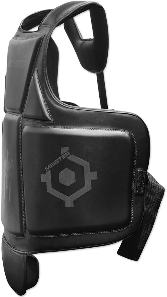 The Meister Body Armor Chest Guard is designed with four layers of 3.5″ thick open-cell and closed-cell foam to absorb strikes like no other. Even with full chest, torso, oblique and coverage, Body Armor still allows excellent mobility during training.