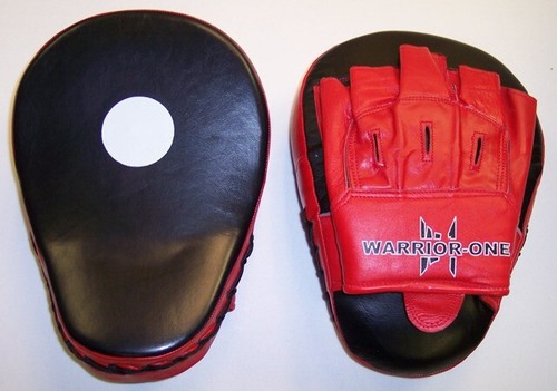 New! Curved Focus Mitts – Leather – Red Black – Boxing Thai Kickboxing MMA UFC