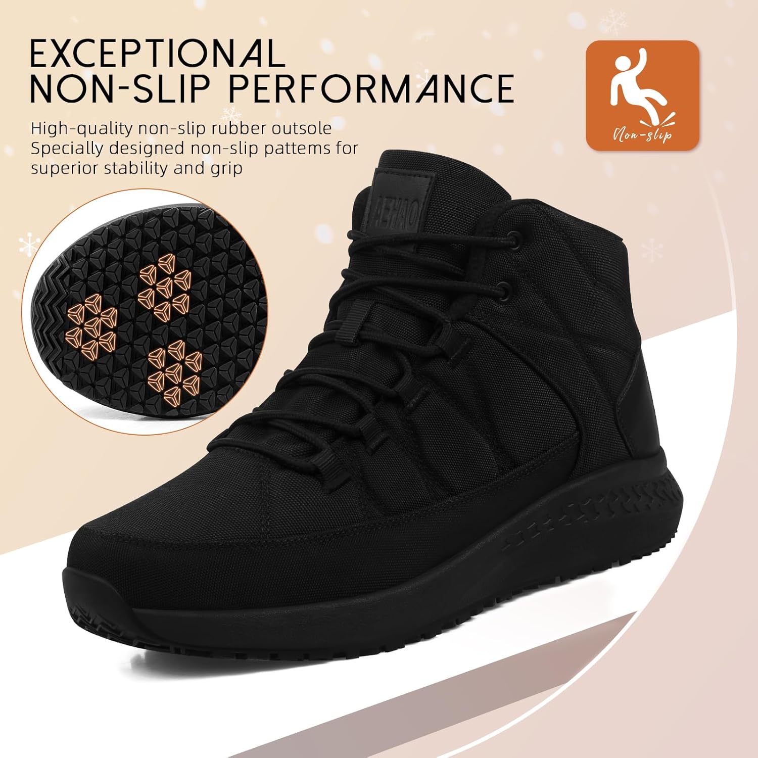 The video showcases the product in use.The video guides you through product setup.The video compares multiple products.The video shows the product being unpacked. AEHAO Non Slip Boots for Women Kitchen Chef Merchant Video