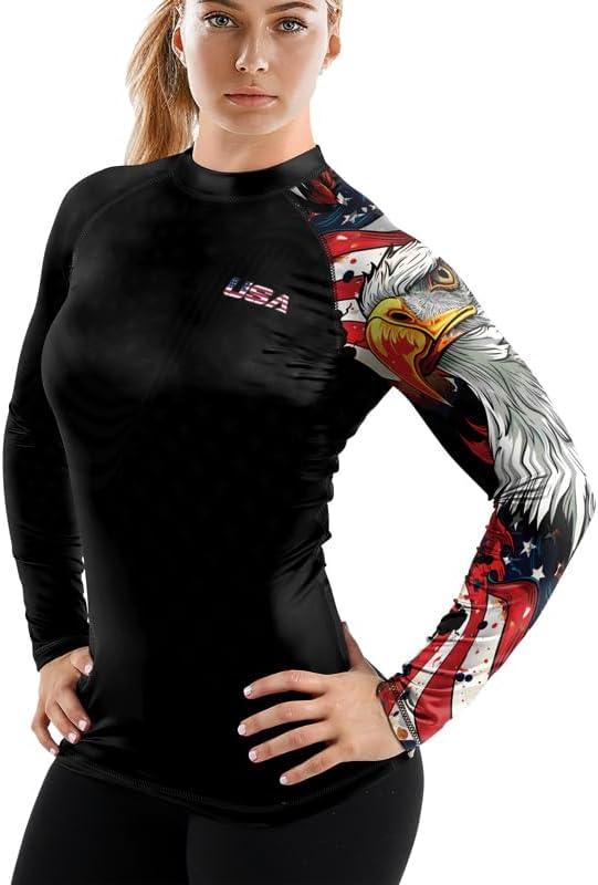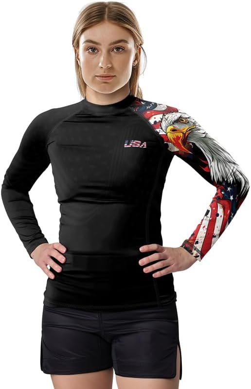 Patriot Women’s Compression Rash Guard – Long Sleeve Base Layer for BJJ, MMA, and Grappling Workouts