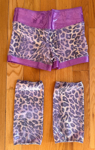Pro Wrestling Shorts W Knee Pad Covers Set Cheetah Purple Print & Pink Sz Medium