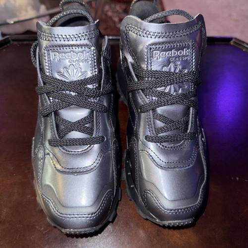 Reebok Womens 6 Club Cardi Black Leather Running Shoes Gym Training Sneakers