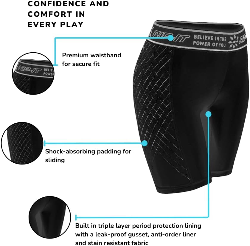 RIP-IT Period-Protection Pro Softball Sliding Shorts, Padded Compression Shorts for Women