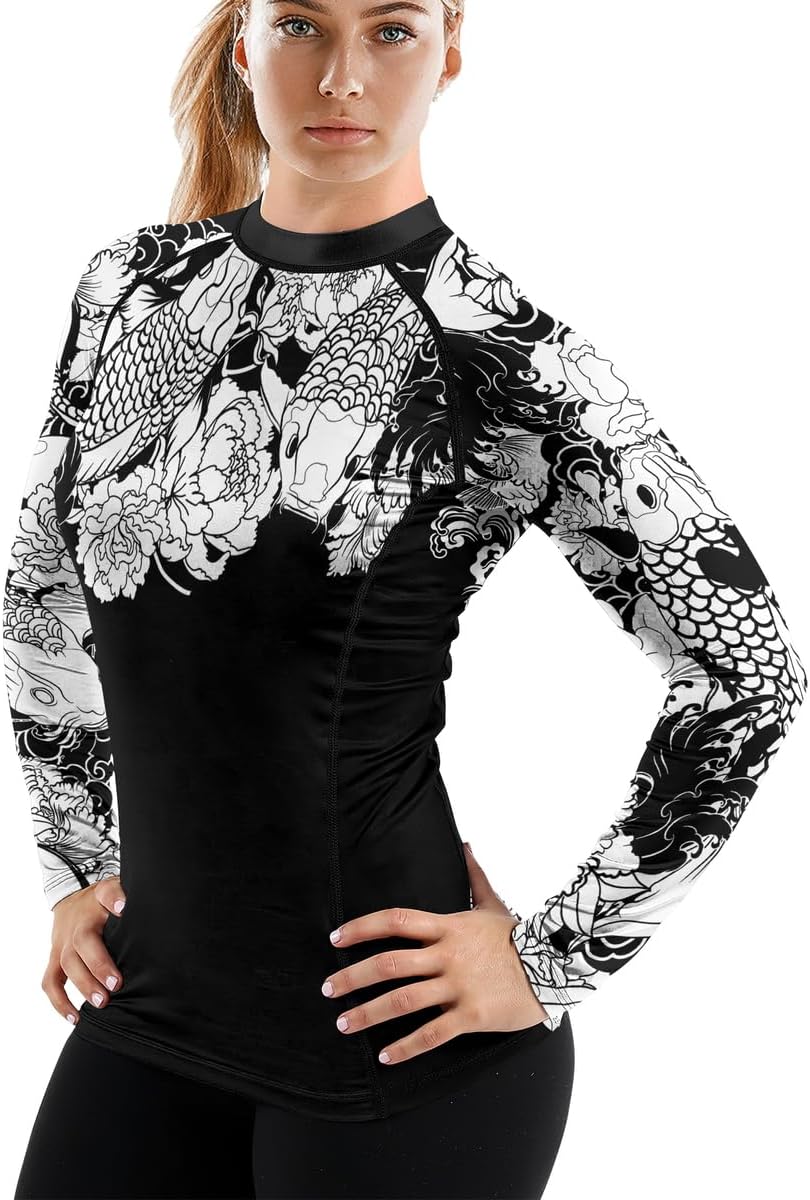Stay cool, dry, and mobile during intense workouts with this top-rated women’s long/short sleeve compression shirt. Designed for MMA, BJJ, and other combat sports, it offers advanced moisture-wicking technology and a flexible polyester/spandex blend for unrestricted movement.