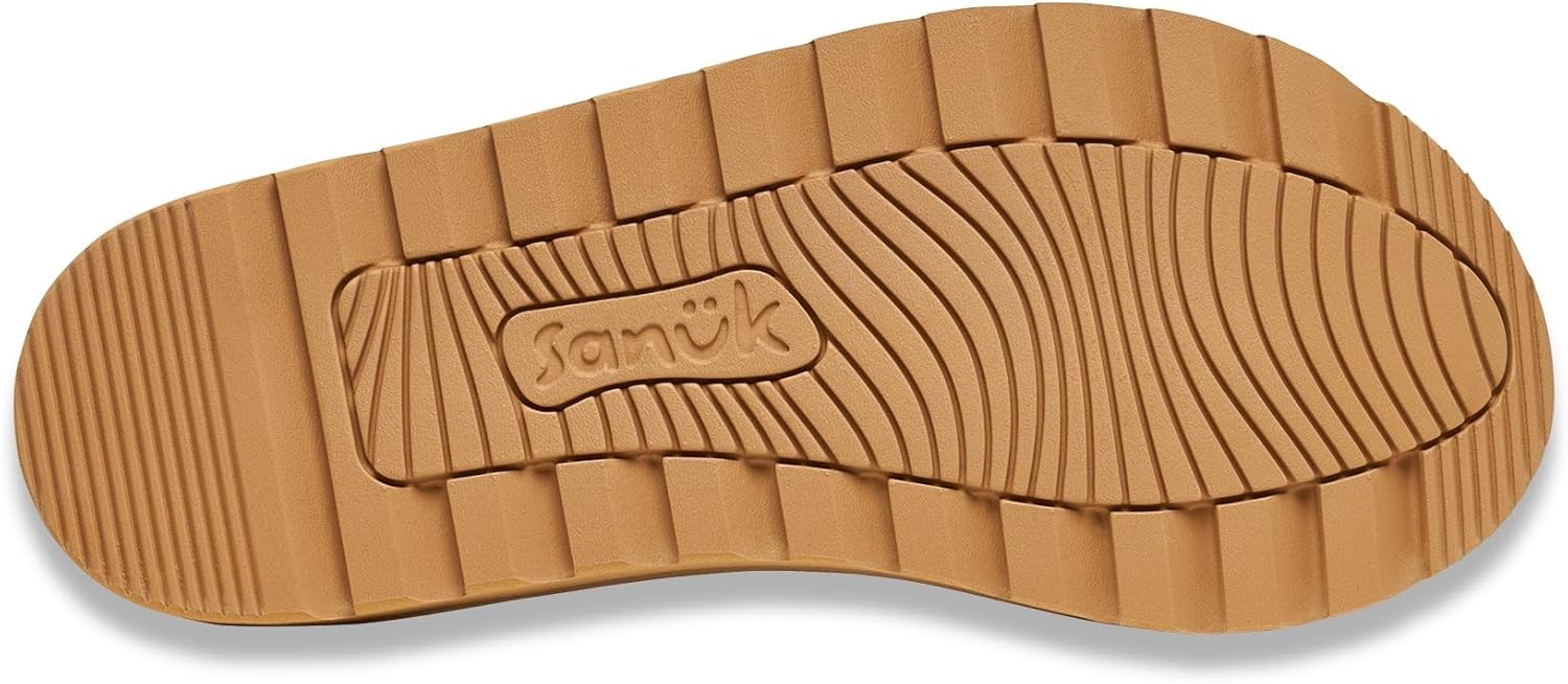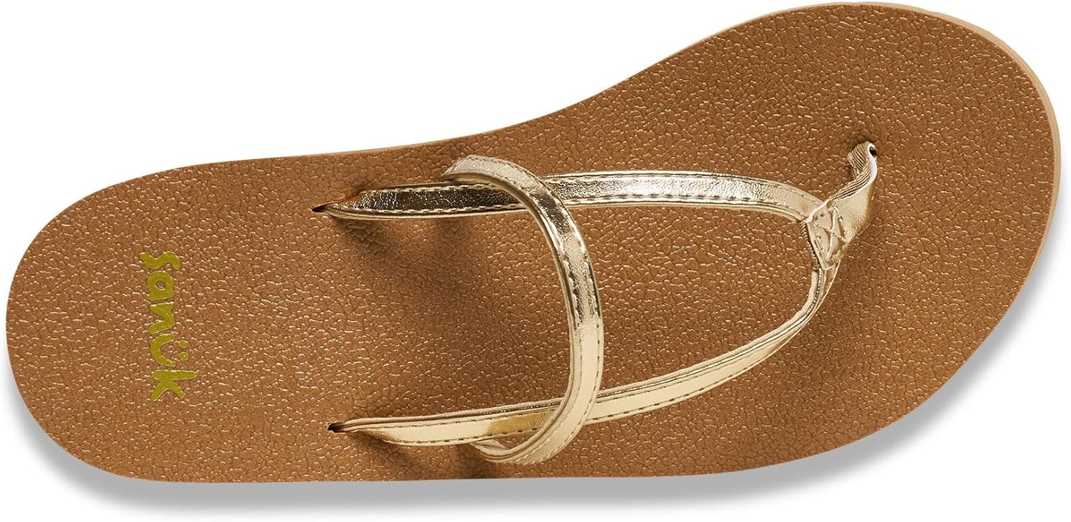 Brand new style. Synthetic leather upper strap. The original memory foam Yoga Mat footbed that molds to your foot for instantly Om-azing comfort. Custom Happy U wave tread sponge rubber outsole made with 53% recycled material.
