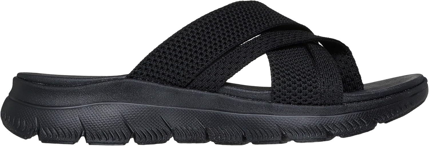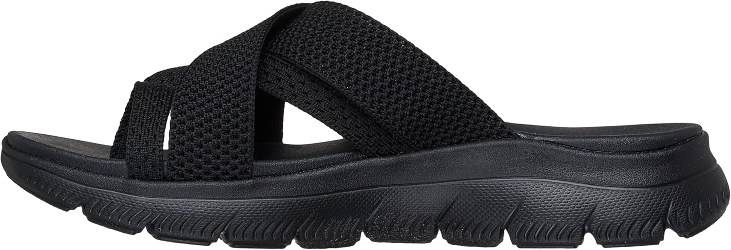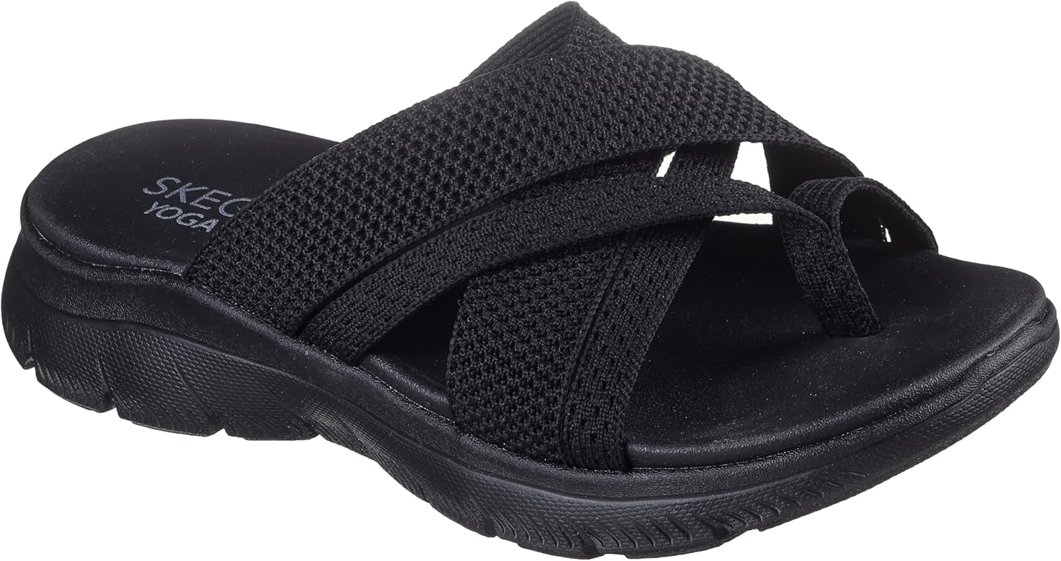 Step into comfort with these womens sandals from Skechers. The Summits Fantasy Walk sandals for women feature a breezy knitted strappy upper design perfect for casual wear. These comfortable sandals for women include a cushioned Yoga Foam footbed and flexible traction outsole. The vegan-friendly construction and machine washable design make these sandals both ethical and easy to maintain.