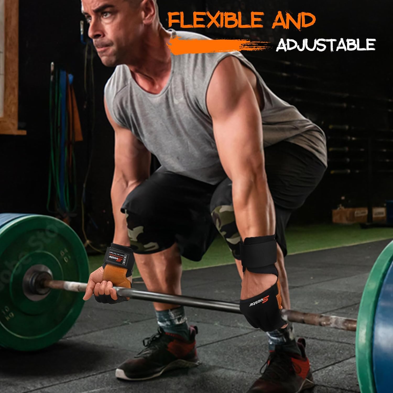 SueStar Workout Gloves, Heavy Duty Cowhide Padded Weight Lifting Gloves with Wrist Support, Full Palm Protection & Silicone Grips Gym for Weightlifting, Deadlifts, Exercise