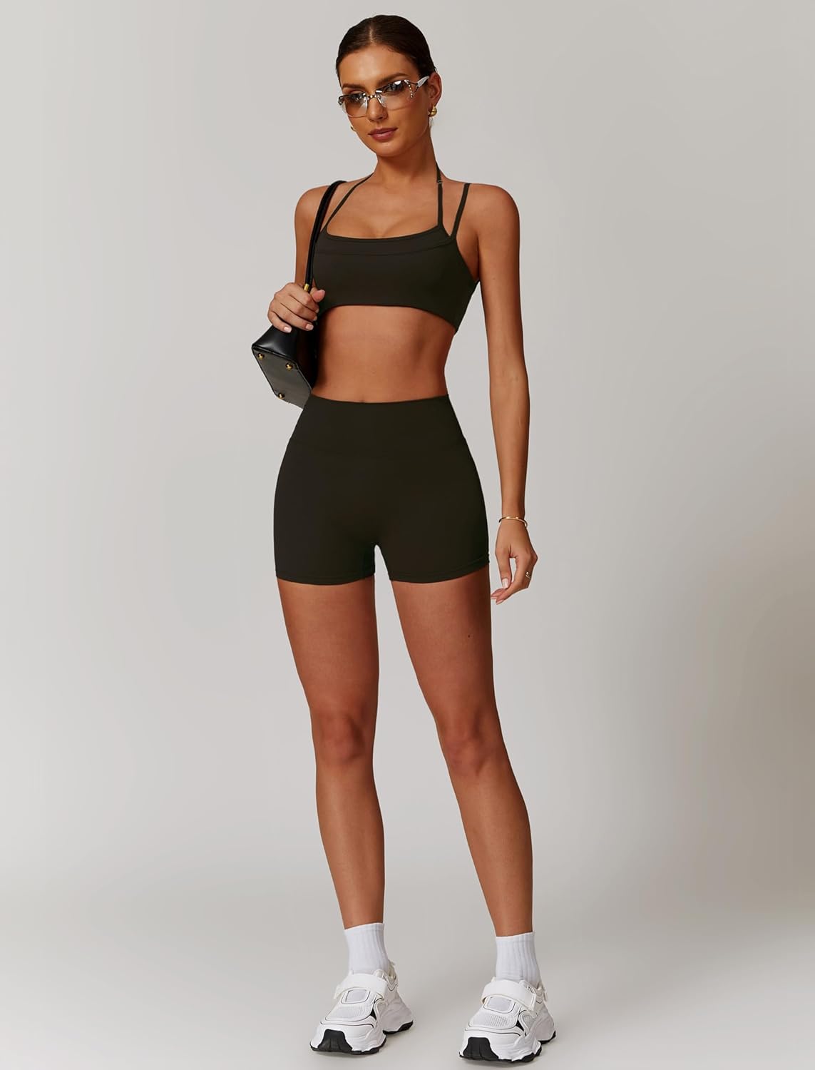Two Piece Workout Sets For Women Sports Bra Matching High Waist Scrunch Butt Shorts Gym Yoga Athletic Clothes