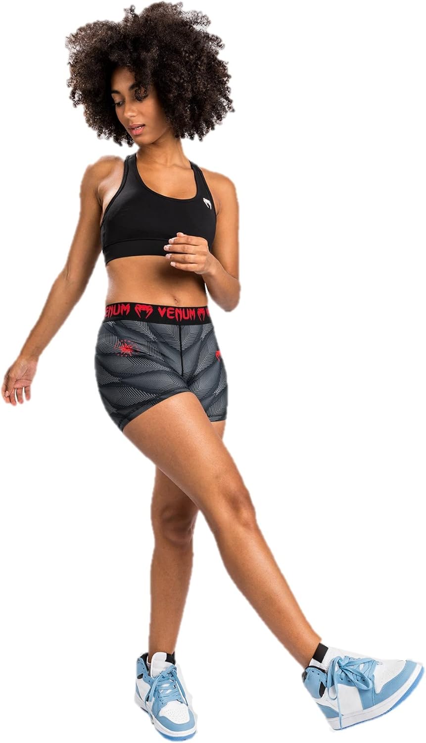 Venum Phantom Compression Shorts for women are short-length performance shorts designed for high-intensity workouts. The elasticated waist and compressive “second skin” fabric stay in place, no matter how intense training gets. Breathable and sweat wicking, the Phantom Compression Shorts will keep you moving freely and in comfort.Featuring a unique black and red design, these short-length compression shorts are as bold as you! Embrace Venum Phantom, moving silently before you strike.A little expert advice: Wear these shorts alone or under fight shorts for extra support. Pair them with the sports bra and Dry-Tech compressive performance T-shirt from the same collection.