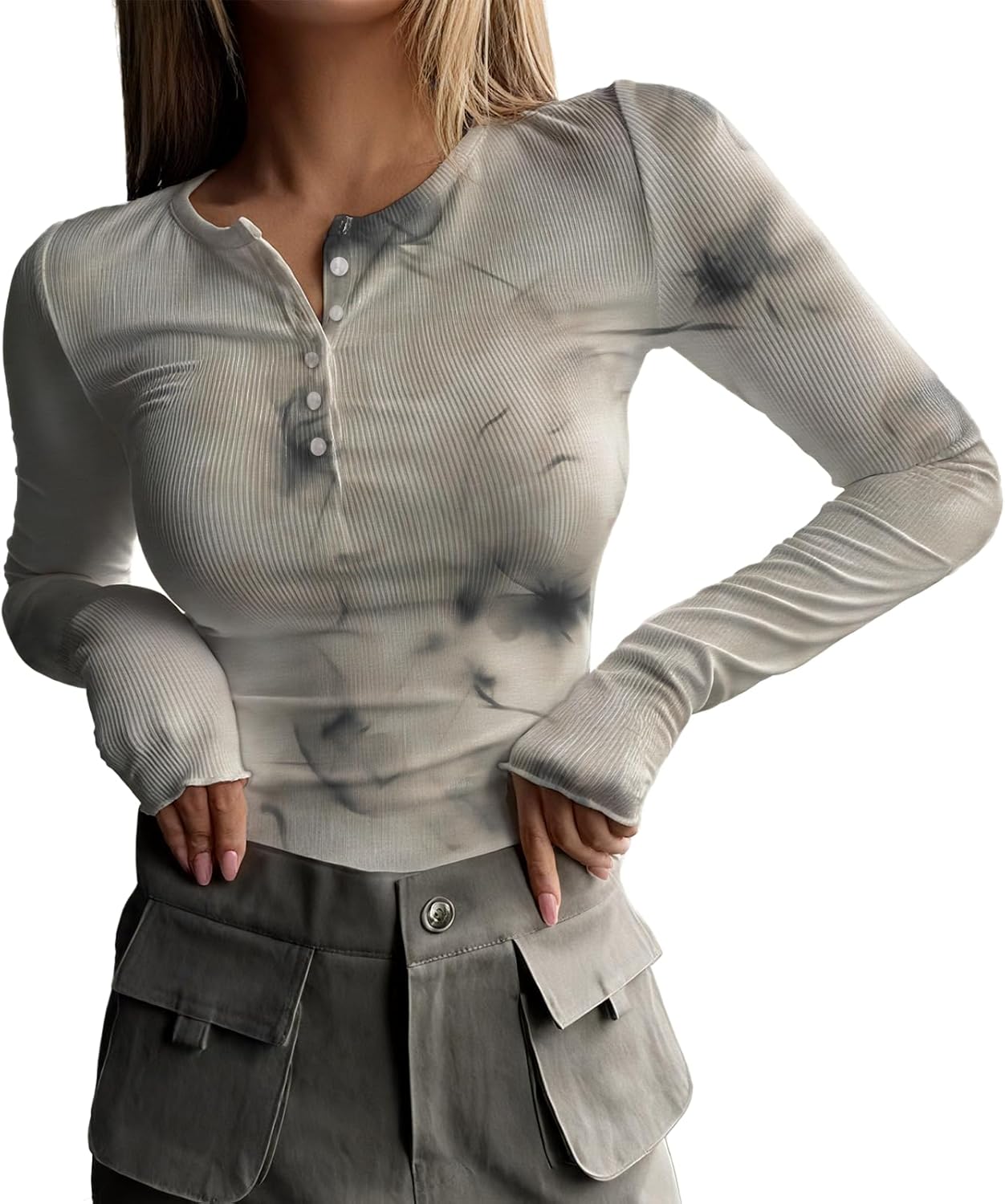 Vintage Womens Long-Sleeved Half Button T Shirts Casual Tshirt Crewneck Fitted Tee Long Sleeve Oversized Tops Women