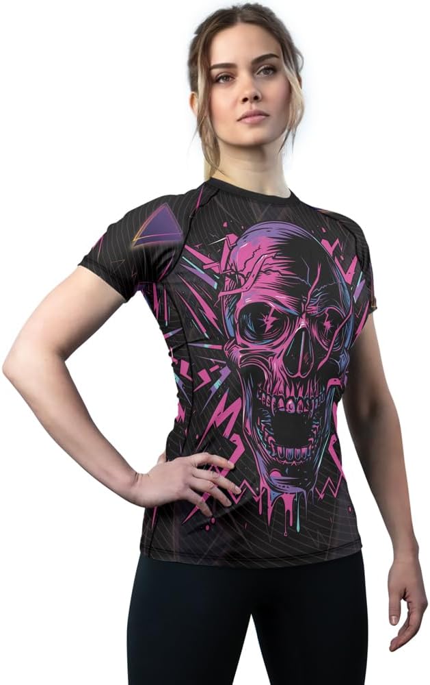 Women’s Halloween Rash Guard Shirt – Short Sleeve Durable Compression Shirt for Martial Arts BJJ MMA