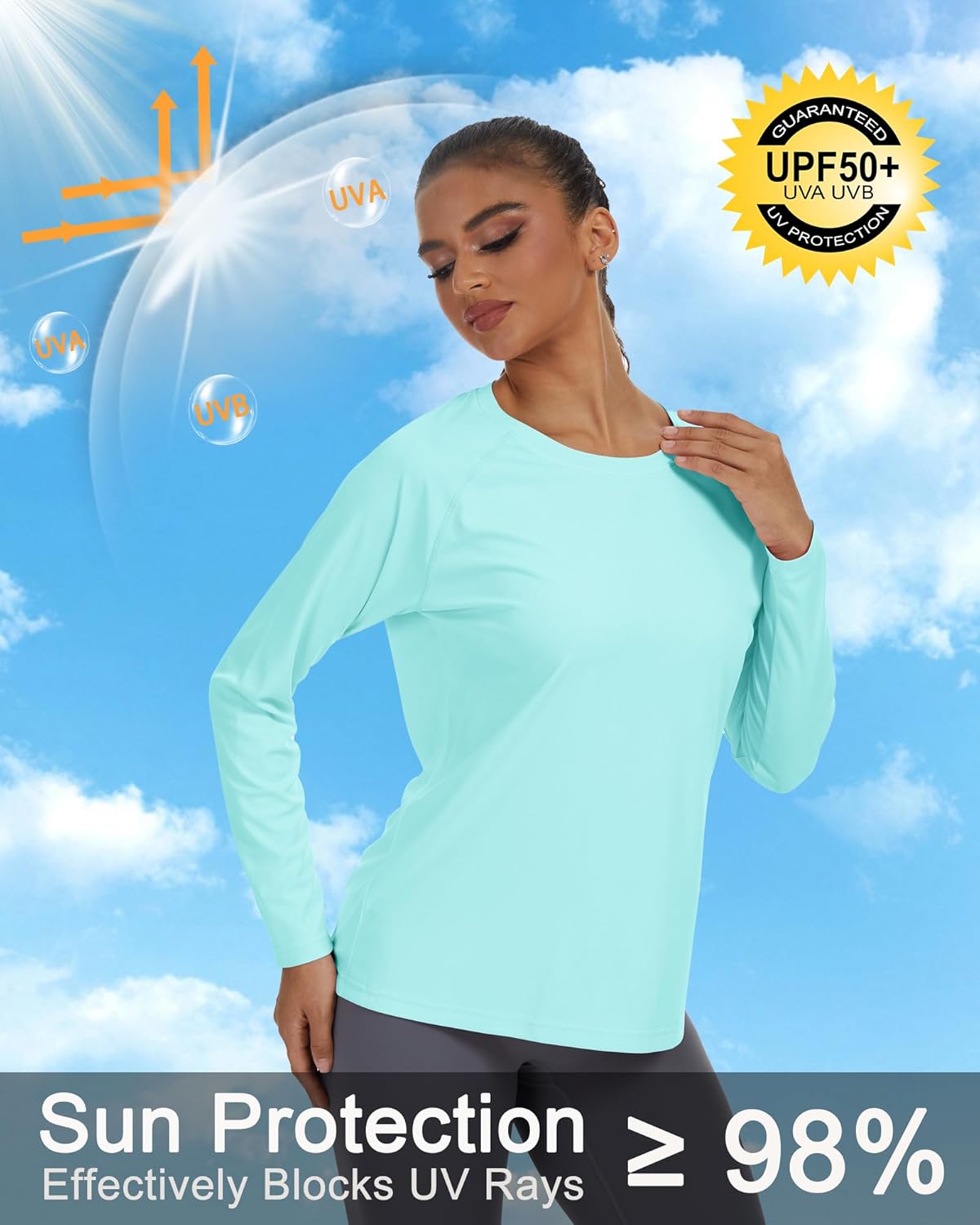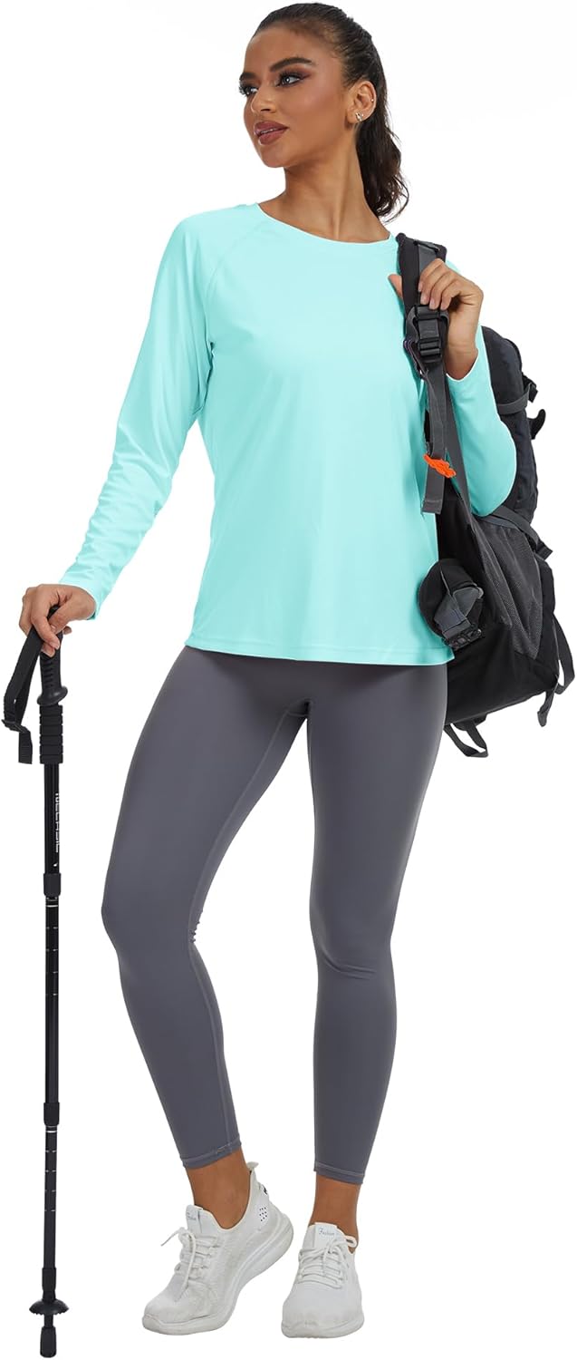 PLUMZJOY Women’s Crew Neck Long Sleeve UPF 50+ T-Shirts Quick Dry Workout Tops